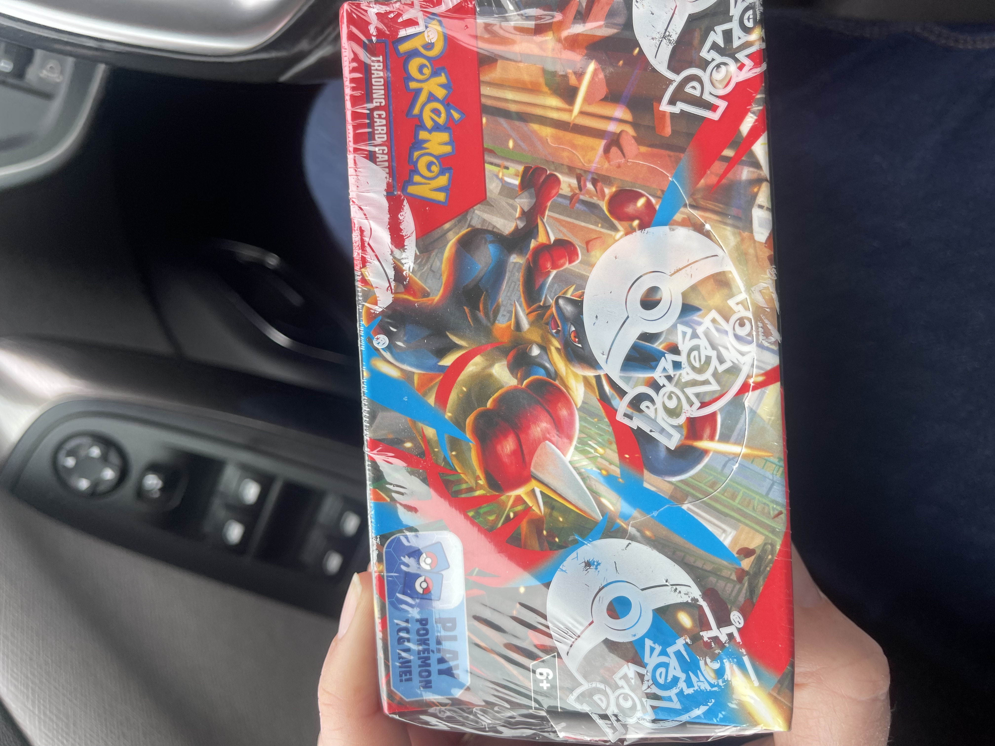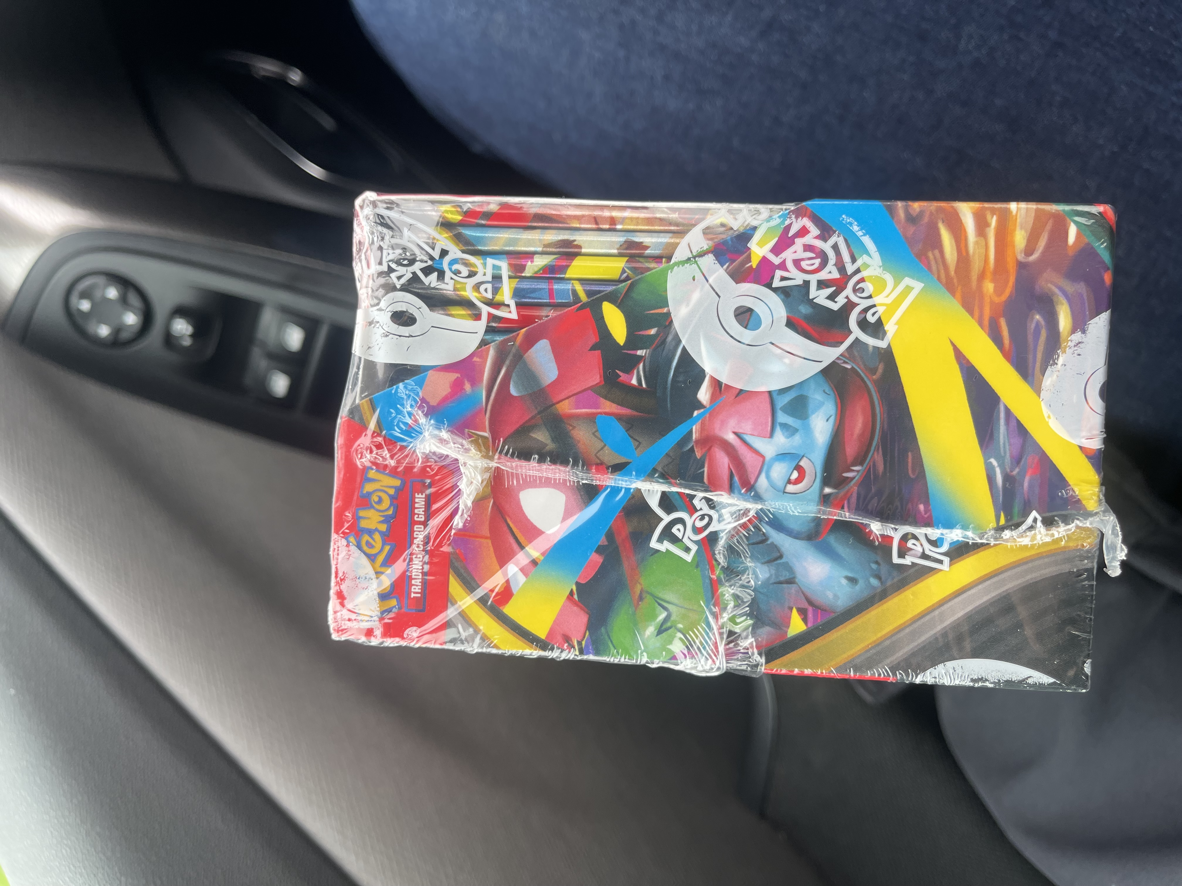 Wat me echter opviel, is dat er geen zwarte gedrukte batchcode onderop de doos staat. Die code heb ik wel vaker gezien bij oudere boosterboxen (zoals uit de XY-, Sun & Moon- of Sword & Shield-periode).
