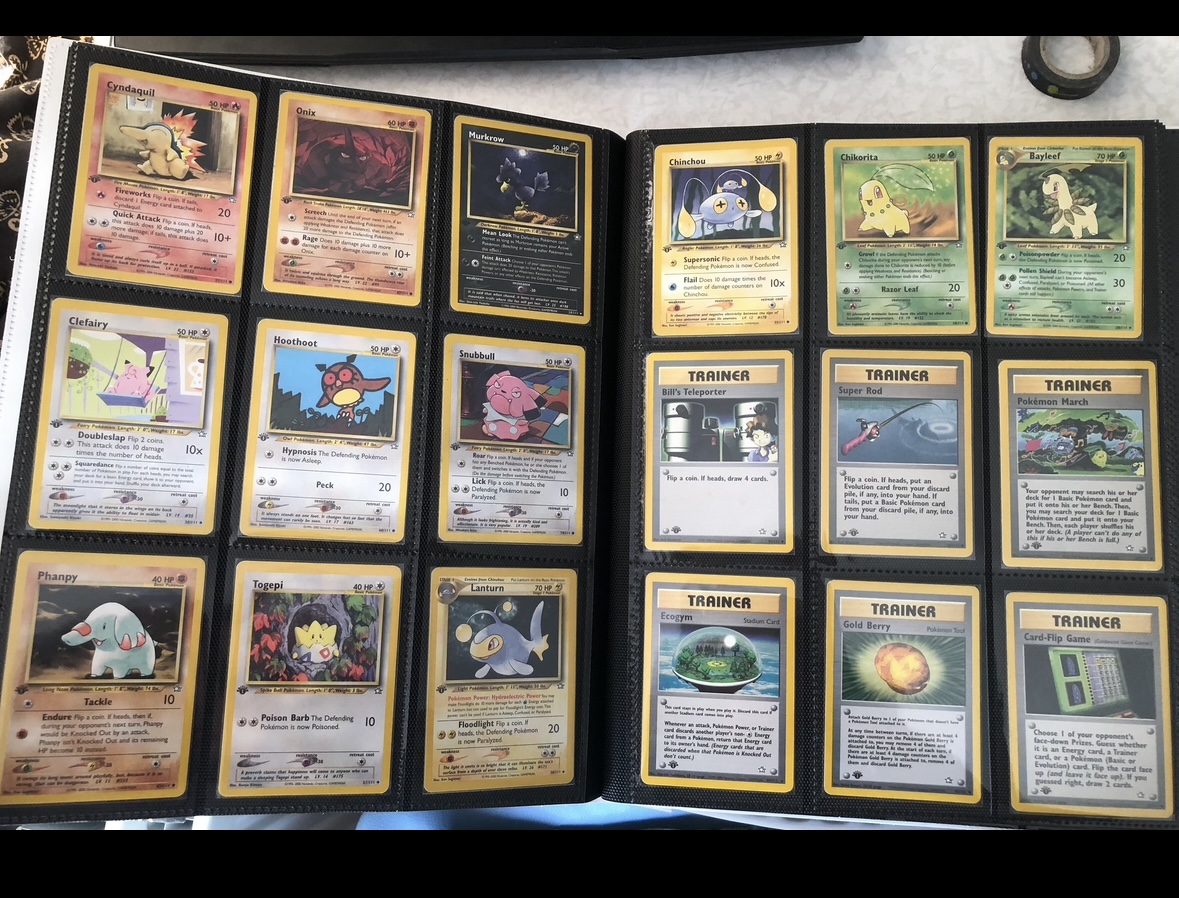 - Witte neo genesis map 4 pocket met rits de kaarten staan normaal en first edition naast elkaar er miste alleen een first edition luigia en een first edition thyplosion