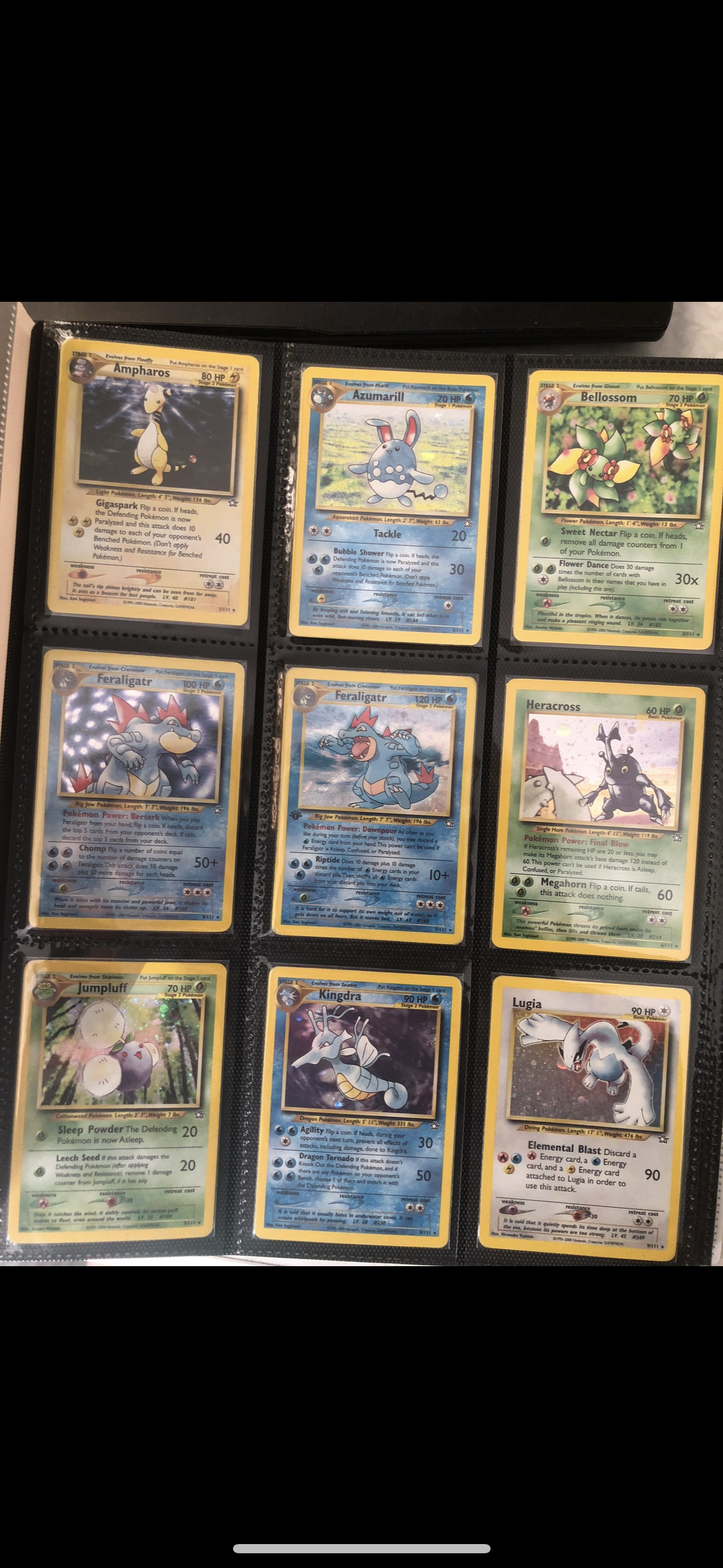 - De meeste kaarten zaten in blauwe action binders, de duurdere kaarten zijn de dubbel sleeved(eerste doorzichtig tweede een etb sleeve), er was ook een ultra pro collectors binder.